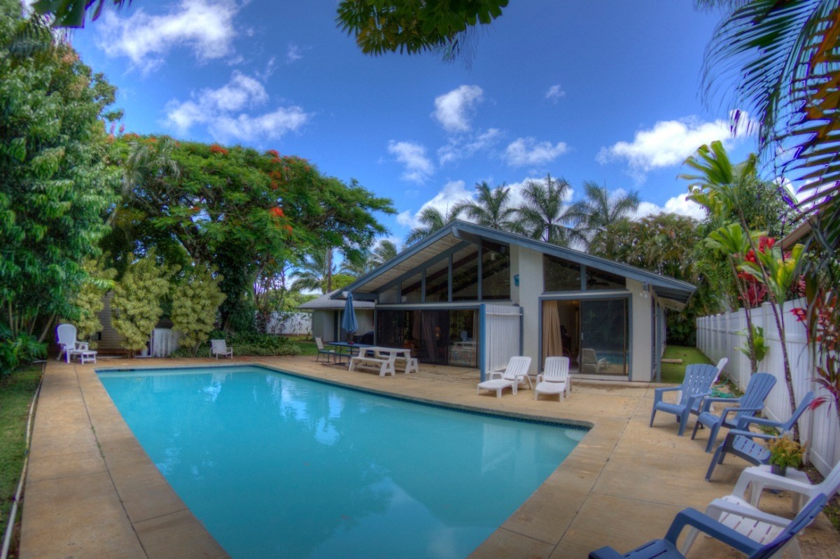 4 Bedrooms, and 2.5 bathrooms. Good size master with private bathroom, and walkout to the pool. Lots of built-ins. Vaulted Ceilings. Amazing windows to bring in the natural light and lush botanical views. More than 20 PV Solar Panels. Newer Roof.